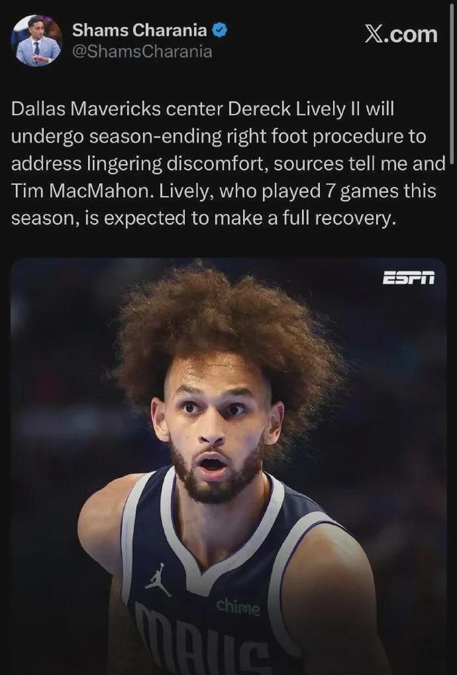利夫利正在接受右脚手术,赛季报销。根据薪资专家马克斯的说法,小牛队可以借用本赛季的生命并申请 2.626680 美元的伤病特例。伤病例外意味着可以为自由球员提供一年合同,或者可以收购已经签订一年合同的球员。莱弗利出生于2004年2月12日,身高2.16米的大能中锋,2023年NBA选秀首轮第12顺位。新秀赛季,他作为关键内线帮助小牛队杀入总决赛。本赛季他只打了7场比赛,场均上场16.4分钟得到4.3分、5.3个篮板、1.9次助攻和1.6次盖帽。这家伙现在有机会成为NBA的饼王,但是他太脆弱了。他的出勤率逐年下降。迄今为止的三个赛季中,他只打了 98 场常规赛比赛,相当于每个赛季约 33 场比赛。庆幸的是,小牛至少还有两名大内线可用e 《大眉毛》和《加福德》。虽然两人的出勤率也令人担忧,但本赛季到目前为止,一个已经踢了10场比赛,另一个已经踢了15场比赛,很可能很快就会全部换队。近日,爆料人沙姆斯透露,小牛队对交易加福德汤普森和拉塞尔持开放态度。当然,交易价值最高的还是浓眉哥,尤其是他能吸引总冠军争夺者。东部第一的活塞队希望得到他。不耐烦的美国媒体开始给活塞队提出mga建议,称他们可以打包送出哈里斯+艾维+霍兰,从小牛队挖走浓眉。哈里森被解雇、浓眉哥即将被替换、球队接近重建……不得不说,今年2月份小牛队将东契奇送到了湖人队,这无疑是NBA历史上最糟糕的操作。至今仍令人困惑至今仍震撼无数人。不过,东契奇却因祸得福。他终于为一支大市场的球队效力,并且拥有了湖人队的新面孔。本赛季至今,他场均贡献35分、9个篮板、9次助攻和1.5次抢断。他的球队以17胜7负暂时排名西部第四。别太高兴。换句话说,湖人队真的应该为哈里森树立一座雕像。他点燃了原本紫金原本的未来。